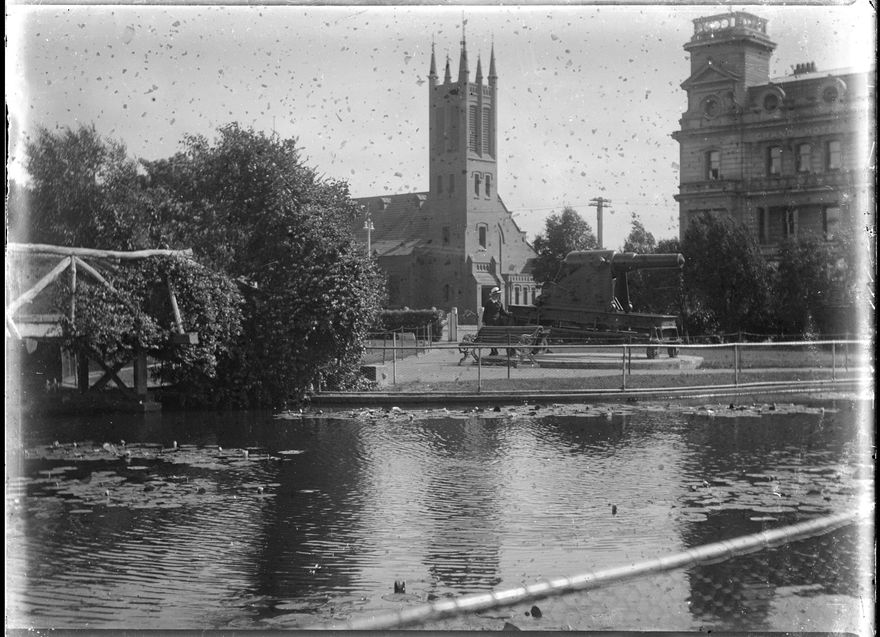 In the foreground is the Butterfly lakelet constructed in 1909 and one of two cannons installed in the Square as surplus from the defence department. Both cannons were removed and scrapped in the 1940s.