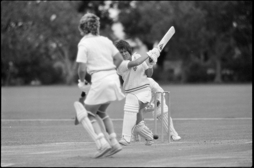 This image was taken (but not used) by the Evening Standard on 19th of January 1982. It depicts Manawatū Women’s cricket team taking on the International Australian Women’s team in a limited over warm-up match for the Hansell's Vita Fresh Women's World Cup 1981/1982. The match was held at Ongley Park in Palmerston North. The Australian team won by 202 runs. The match report ‘Aussies too polished in all facets’ was written by Ford Watson and published the next day: