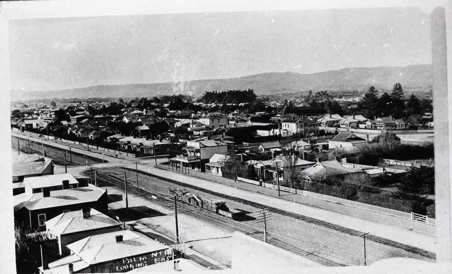 - A view looking east across Main Street from the roof of Palmerston Cooperage and Box Factory (Cook's Mill).
