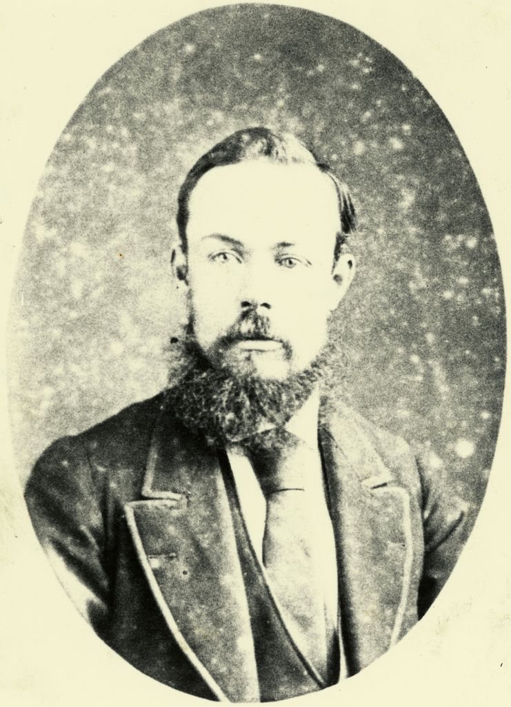 Found within Mrs Snelson's scrapbook. Unidentified, but possibly Mr Crawford, a brewer for Dungan and Llyod, who arrived in Palmerston North in 1879. Handwritten biographical slip found between p 29-30