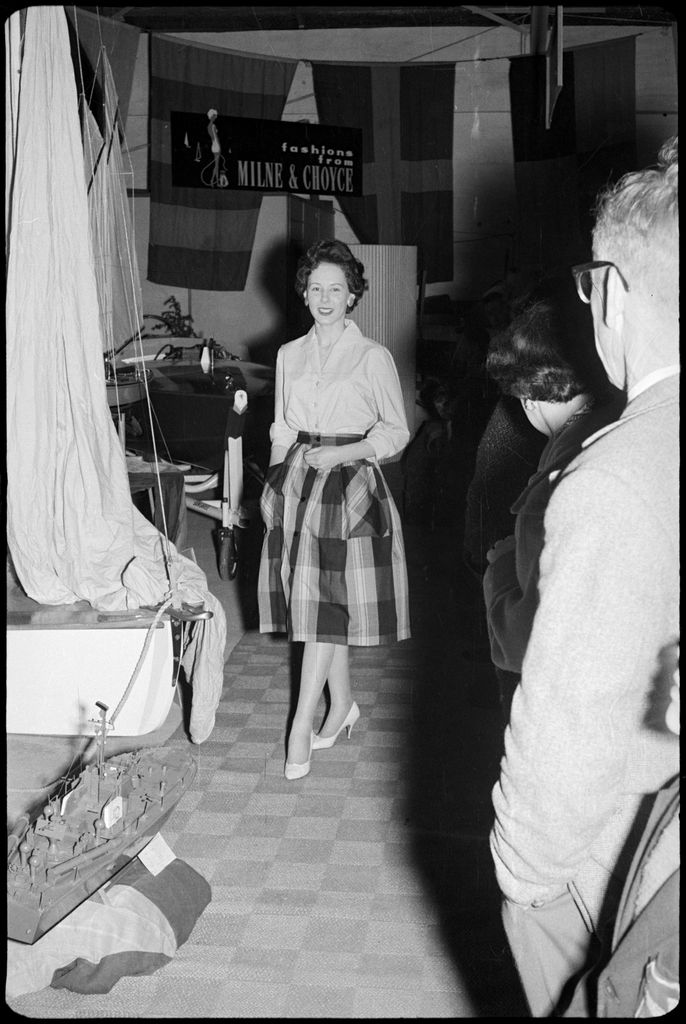 Caption: “A mannequin parade was held during the first boat show in Palmerston North, which attracted a great deal of interest. The above photographs show some of the latest, various costumes suitable at the seaside.”