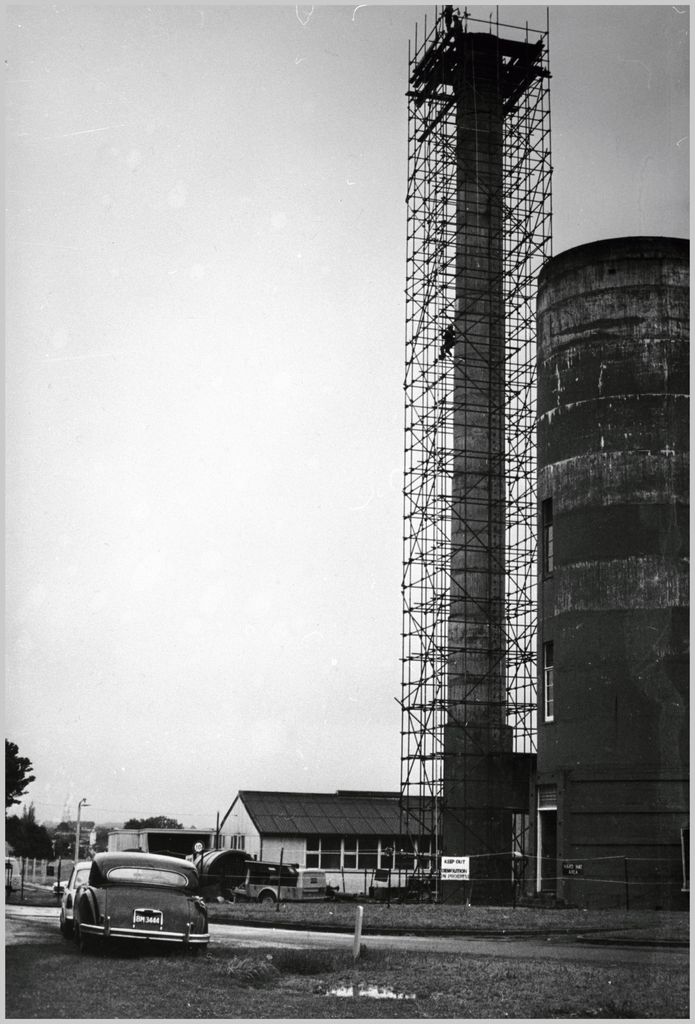 This city landmark, the Public Hospital's boiler chimney was 123ft. high. It was demolished as part of a new building programme at the hospital in the 1970s. A new boiler and chimney were built to replace it.