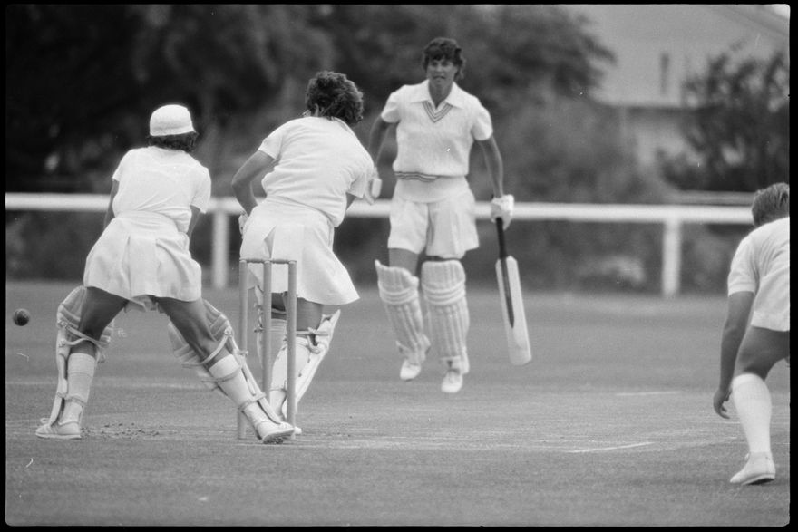 This image was taken (but not used) by the Evening Standard on 21st of January 1982. It depicts the New Zealand women’s cricket team taking on the International XI women’s team in a limited over match for the Hansell's Vita Fresh Women's World Cup 1981/1982. The match was held at Fitzherbert Park in Palmerston North. The New Zealand team won by 97 runs.