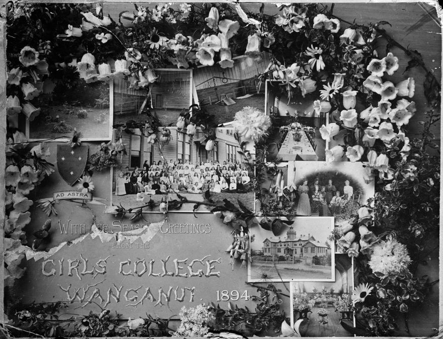 This postcard is from the Girls and Staff of Wanganui Girls College, 1894. Wanganui College had boarding facilities.