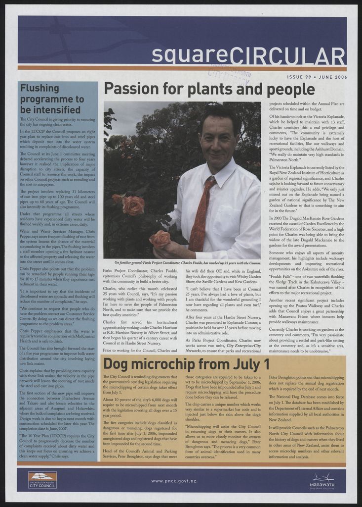 The Square Circular was Palmerston North City Council's monthly community publication, informing Palmerstonians of PNCC initiatives, activites, and events. This month's issue includes: 10 Year Plan, archives photo, building inspections, Charles Foulds, dog microchipping, oxidation ponds, Saddle Road bridge opening, urban planning awards, Cook Street upgrade, pollution, work experience at the depot, building warrants of fitness, leaf sucker, voting system, winter festival, poets, Grand Hotel, events strategy.