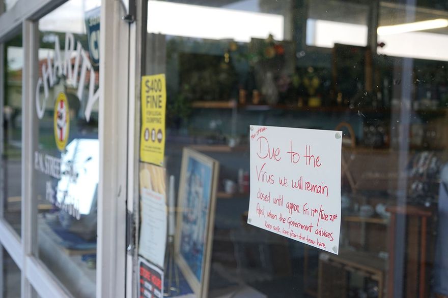 Sign notifying of the closure of Palmerston North Street Van Charity Store during the COVID-19 pandemic.