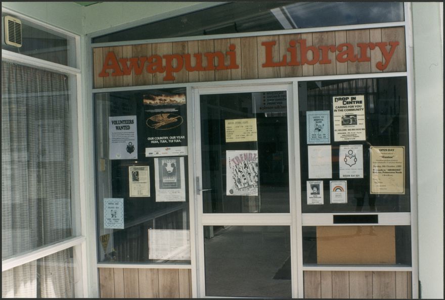 The entrance to the Awapuni Library at 96C College Street, Palmerston North. The library opened in November, 1987.
