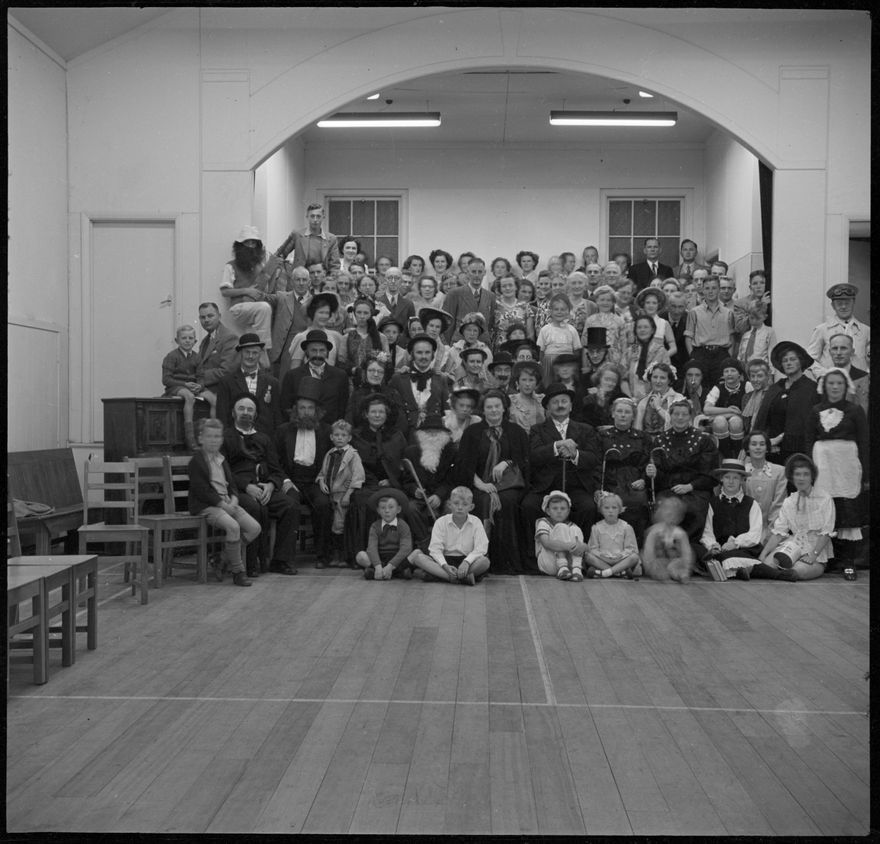 The celebrate the 75th Anniversary of Palmerston North, a programme of events was held from Saturday 15 to Saturday 22 March 1952. This group includes several people in Victorian styled dress.