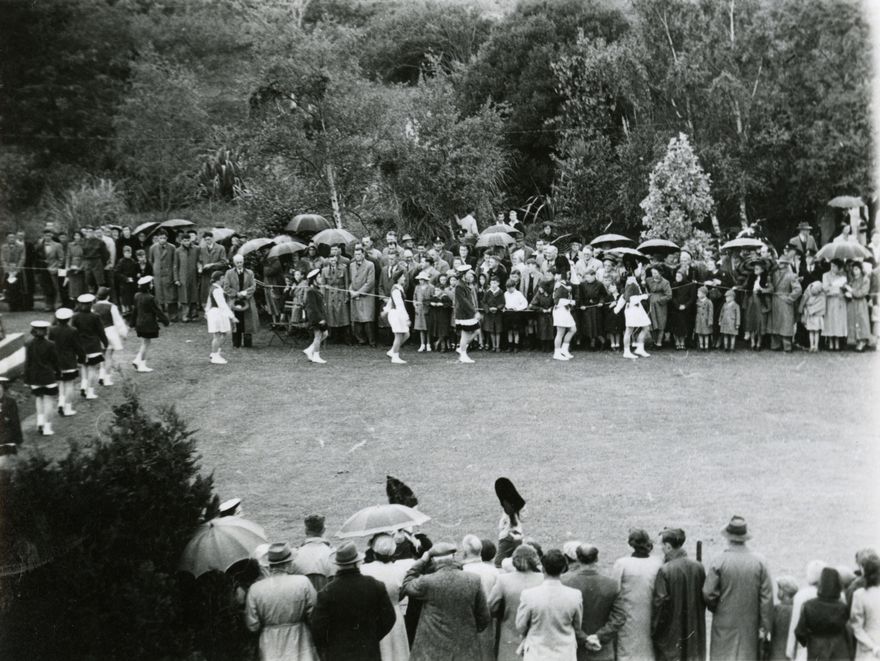 The obelisk at Fitzroy Park, as it was then called, was unveiled in this ceremony by Major-General Sir Howard Kippenberger. Marching girls performed as part of the occasion. Later, in 1954, the park was dedicated and renamed Memorial Park. The obelisk, in a state of disrepair, was removed in 1983 and now only the gates into the park remain as the memorial.