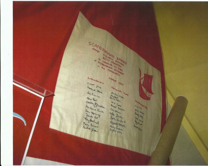 Names of the makers of the Scandinavian Wall Hanging in the Palmerston North Central Library as embroidered on the back of the hanging.