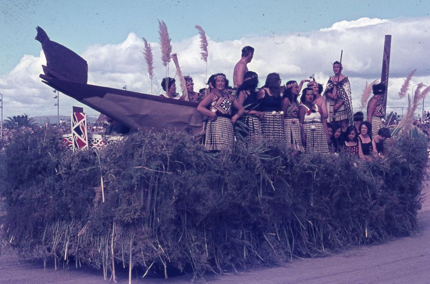 Ninety-two floats took part at the Palmerston North City Centennial celebrations of 1971. Approx. 10,000 people were present at the event to celebrate 100 years of Palmerston North. Keith Roland Hamblyn was a photographer with the Palmerston North Hospital Board for many years. In a private capacity, he documented a wide variety of public events between 1958 and the early 1970s.
