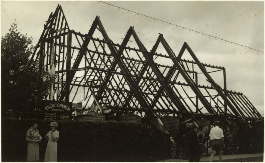 The Knox Church in Feilding was destroyed by arson 10 March 1968. The church was located on the corner of Kimbolton Road and North Street and was rebuilt on the same site in 1974.