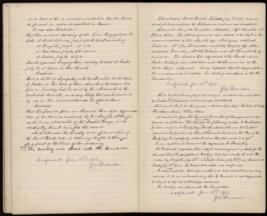 This baptismal register was for the Foxton Presbyterian Church. The register also includes Communion Rolls of Foxton 1907-15, Oroua Bridge 1909-15, Glen Oroua 1909-15, Tiakitahuna 1909-13, and Session Minutes 1909-1928.