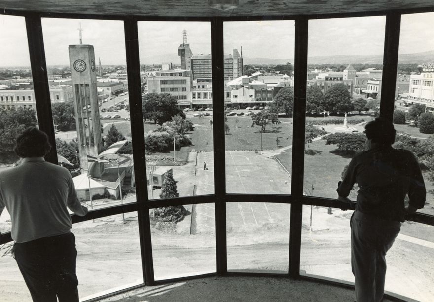 A new civic centre was constructed for the Palmerston North City Council 1976-1980, with Council staff moving in January 1980. It consisted of Council offices, Council Chamber and Convention Centre. The public viewing chamber is at the northern end of the building, overlooking The Square.