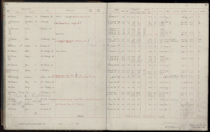 Palmerston North Borough Council rate book, listing rate payers for the years (1 April - 31 March) 1920 - 1921. Gives names, street, owner (if different to rate payer), legal description of property, capital and unimproved values and rates paid.