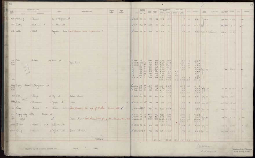 Palmerston North Borough Council rate book, listing rate payers for the years (1 April - 31 March) 1920 - 1921. Gives names, street, owner (if different to rate payer), legal description of property, capital and unimproved values and rates paid.