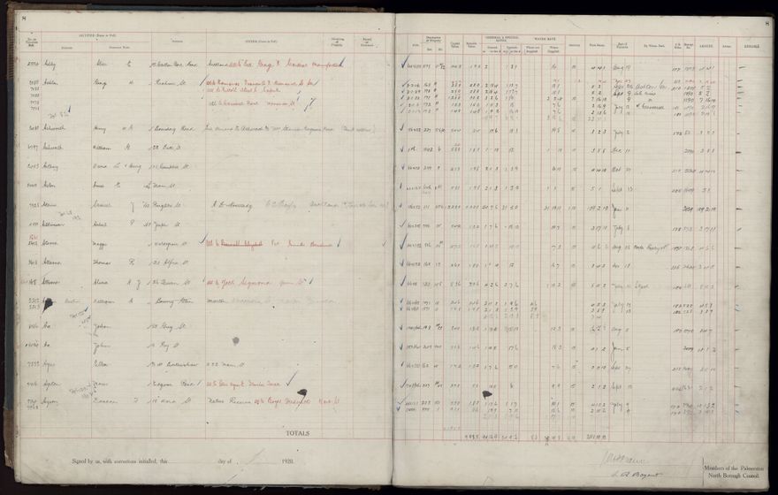 Palmerston North Borough Council rate book, listing rate payers for the years (1 April - 31 March) 1920 - 1921. Gives names, street, owner (if different to rate payer), legal description of property, capital and unimproved values and rates paid.