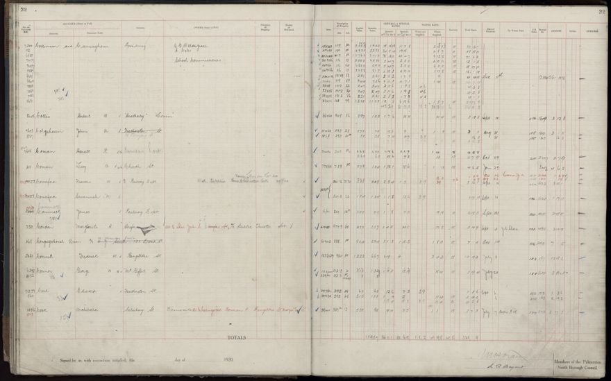 Palmerston North Borough Council rate book, listing rate payers for the years (1 April - 31 March) 1920 - 1921. Gives names, street, owner (if different to rate payer), legal description of property, capital and unimproved values and rates paid.