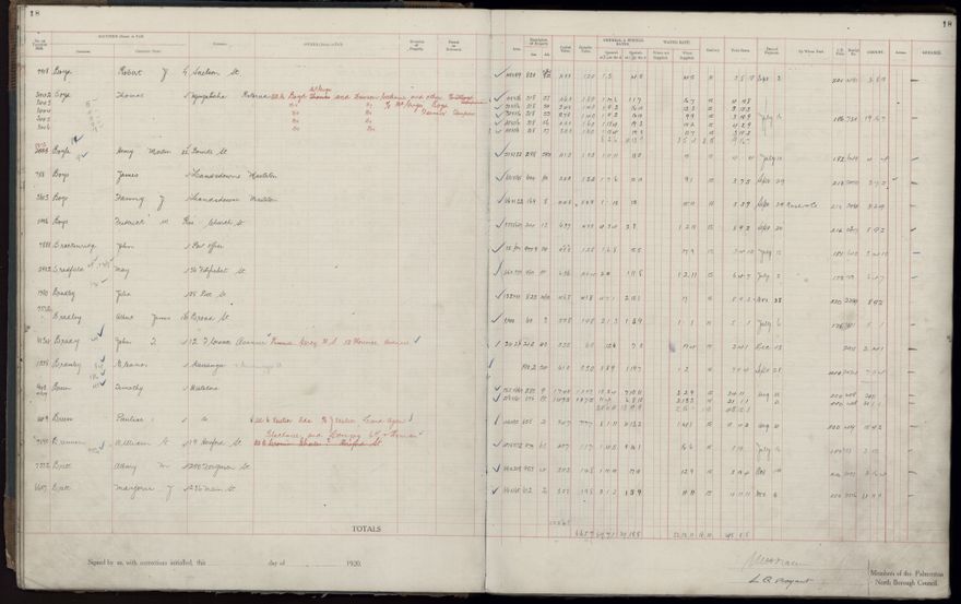 Palmerston North Borough Council rate book, listing rate payers for the years (1 April - 31 March) 1920 - 1921. Gives names, street, owner (if different to rate payer), legal description of property, capital and unimproved values and rates paid.