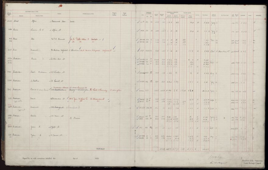 Palmerston North Borough Council rate book, listing rate payers for the years (1 April - 31 March) 1920 - 1921. Gives names, street, owner (if different to rate payer), legal description of property, capital and unimproved values and rates paid.