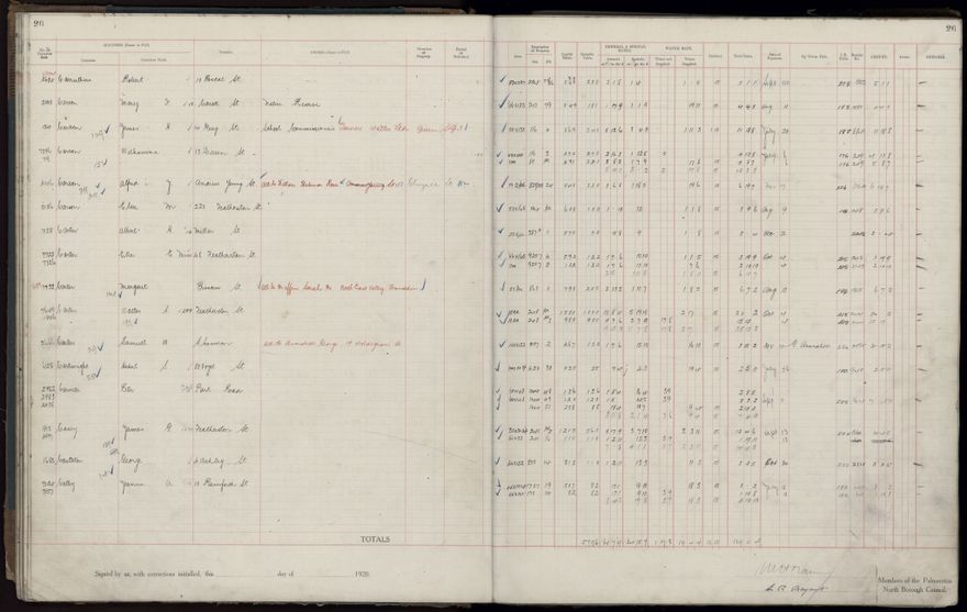 Palmerston North Borough Council rate book, listing rate payers for the years (1 April - 31 March) 1920 - 1921. Gives names, street, owner (if different to rate payer), legal description of property, capital and unimproved values and rates paid.