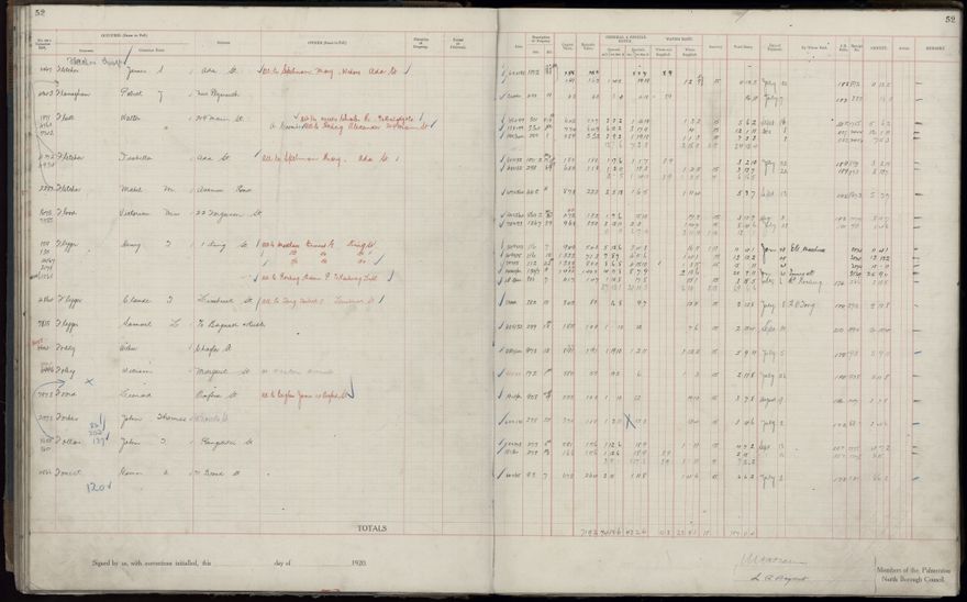 Palmerston North Borough Council rate book, listing rate payers for the years (1 April - 31 March) 1920 - 1921. Gives names, street, owner (if different to rate payer), legal description of property, capital and unimproved values and rates paid.