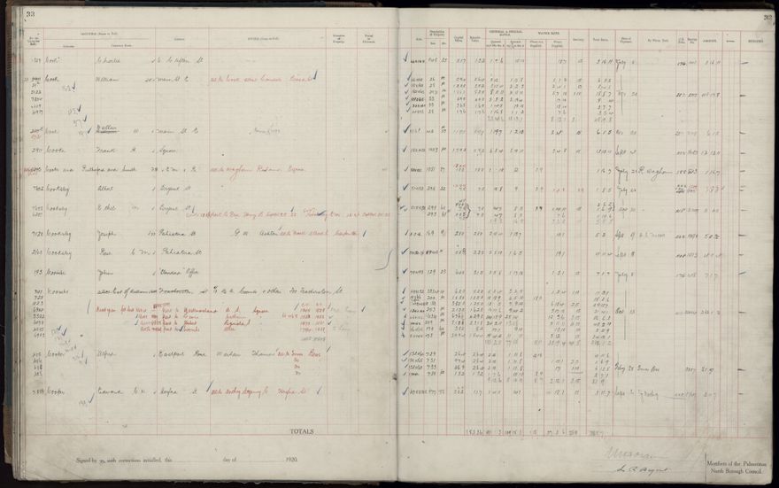 Palmerston North Borough Council rate book, listing rate payers for the years (1 April - 31 March) 1920 - 1921. Gives names, street, owner (if different to rate payer), legal description of property, capital and unimproved values and rates paid.
