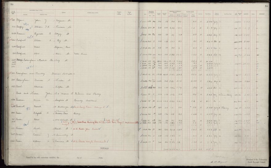 Palmerston North Borough Council rate book, listing rate payers for the years (1 April - 31 March) 1920 - 1921. Gives names, street, owner (if different to rate payer), legal description of property, capital and unimproved values and rates paid.
