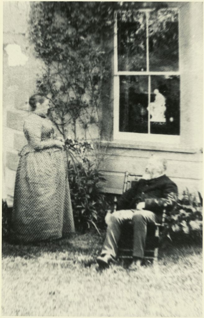 George Matthew Snelson and wife Louisa Matilda Snelson are shown here in the garden of their Fitzherbert Street home. George was the first mayor of Palmerston North and he and his wife are known as "the mother and father of Palmerston North."