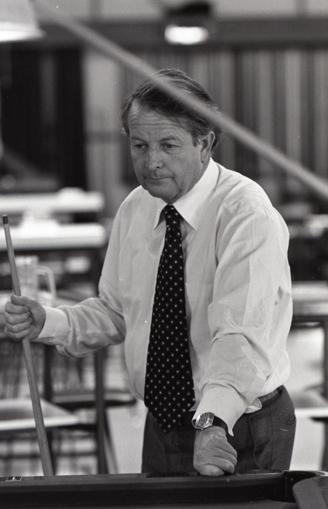 Labour Leader Bill Rowling stopped in at Palmerston North on Friday the 17th of November, while travelling between Masterton and Levin on the election campaign trail. He caught up with Labour candidate for Manawatu Trevor de Cleene and candidate for Palmerston North Joe Walding for a game of pool over lunch, visited the Manawatu Evening Standard offices and got a haircut. In an interview, Rowling said he preferred talking to people rather than appearing on television and referred to the televised leaders debate planned for the next day, stating “I hope it will bring to light that the present Government is floundering.”