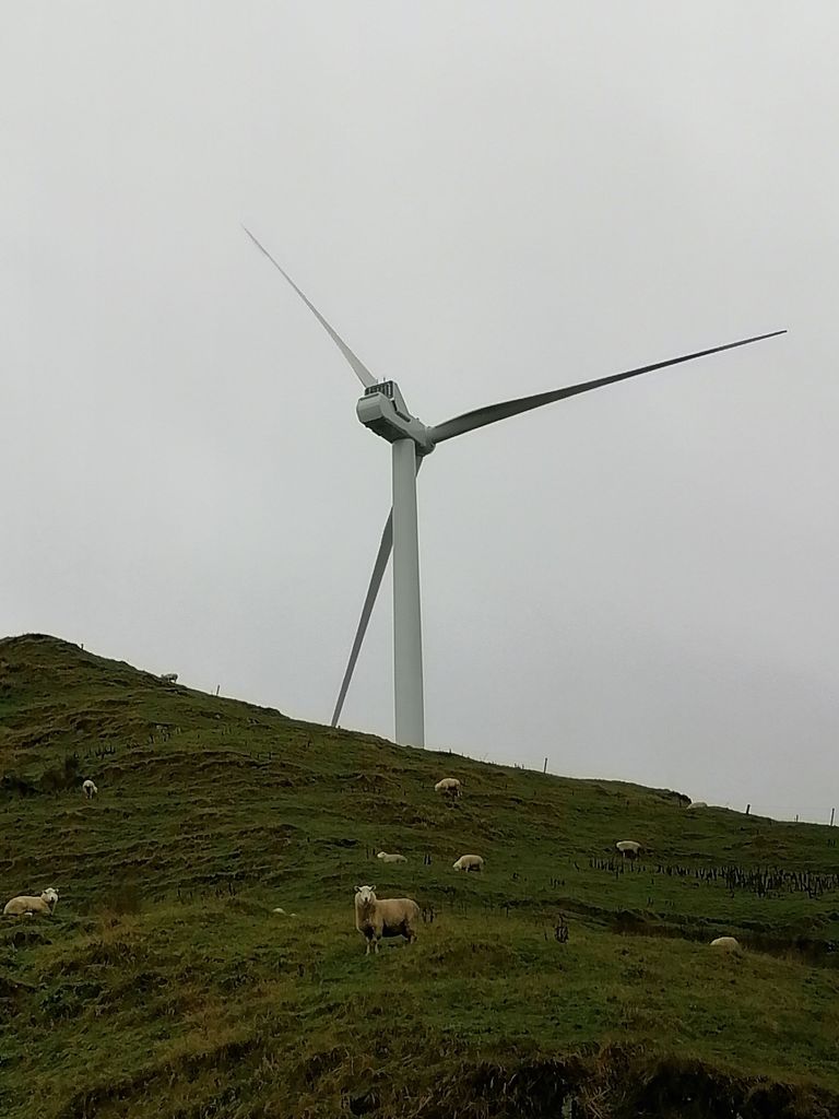 One of the wind turbines on the Wind Farm at the top of the Pahiatua Track. The Turitea Wind Farm is to be the largest in New Zealand.