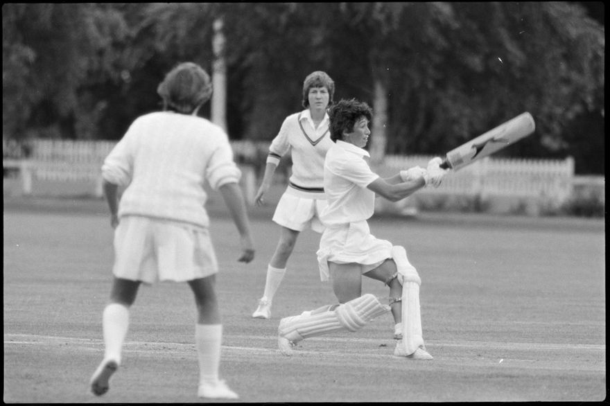 This image was taken (but not used) by the Evening Standard on 19th of January 1982. It depicts Manawatū Women’s cricket team taking on the International Australian Women’s team in a limited over warm-up match for the Hansell's Vita Fresh Women's World Cup 1981/1982. The match was held at Ongley Park in Palmerston North. The Australian team won by 202 runs. The match report ‘Aussies too polished in all facets’ was written by Ford Watson and published the next day: