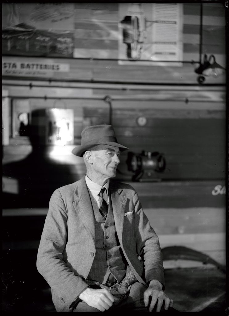 Mr Child of Child Bros sitting in his workshop. Child Bros Ltd, established in Palmerton North 1919, was a carrying firm. It was later called Child Services and operated in Alert Street. Also see 2012G_ELMAR-4_006330