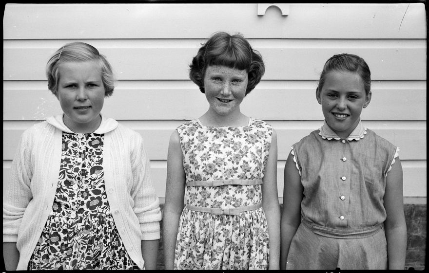 This image was taken for a story that ran in The Manawatu Evening Standard on 08 December 1960 "Duxes of City and District Schools: Jennifer Whatman (Dux, College Street School) Suzanne Tapp (Equal runner-up, College Street School), Susan Reed (Equal runner-up, College Street School)"