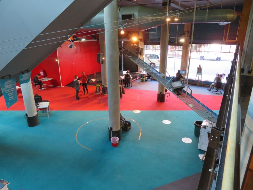 Computers were moved from the mezzanine level down to Event Central on the ground floor of Palmerston North City Library to allow for social distancing during the COVID-19 Pandemic.