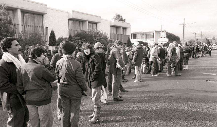 This image was taken (but not used) for a story that ran in The Manawatu Evening Standard on 01 August 1981. Anti-Apartheid and anti-Springbok tour protestors picketed the touring Springbok rugby team’s hotel – The Fitzherbert Motor Inn – but the Standard reported the team had left for the ground before protesters arrival.