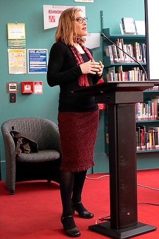 Catherine Knight is an environmental historian and policy analyst. This image was taken at the launch of her book, "Wildbore: A photographic legacy", about Charles Wildbore of the Pohangina Valley, held at the Palmerston North Central Library 29 August 2018.