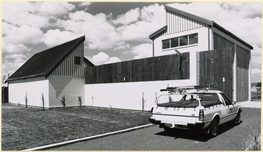 This substation was the Manawatu Oroua Electric Power Board’s first environmentally designed plant in Palmerston North. It was opened by the Board’s Chairman, Mr Mel Waters, on February 9 1981. The small site is surrounded by a high wall so that only the tips of the low pylons carrying the 33,000 volt cables can be seen; eventually to be hidden by trees. The building cost $500,000 to design and build, including $15,000 for disguising the pylons. The station reduces 33,000 volts to 11,000 volts for distribution to housing and industry in the north-western corner of Palmerston North.