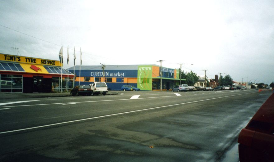 Tony's Tyre Service and Curtain Market on the corner of Church Street and Snelson Street.