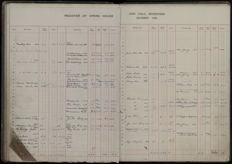 Municipal Opera House and Coronation Hall, Register of Bookings