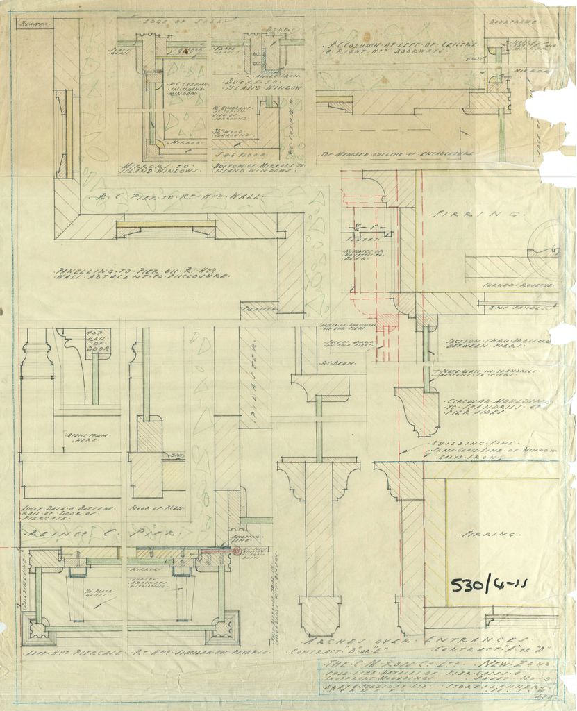 Architectural plan details for the CM Ross Building. In 1927-1928 this new department store was built, replacing the three buildings that comprised C M Ross Co. Ltd on The Square, Palmerston North.