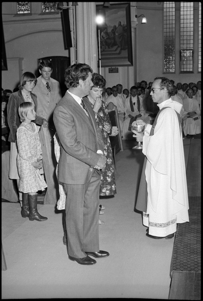 This image was taken by the Evening Standard on the 23rd of April 1980 and was published on the 26th. It depicts a moment from the ordination of Father Peter Cullinane as a Catholic Bishop.