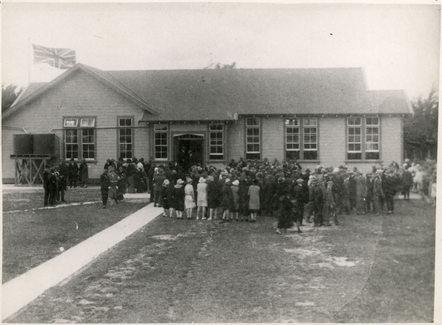 This photograph shoes the opening of the new Rongotea School building in April 1927. See 'History of Rongotea' by Pamela Benson for a detailed history of the school.