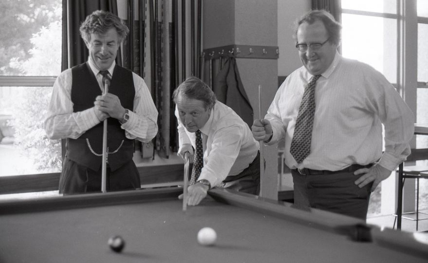 Labour Leader Bill Rowling stopped in at Palmerston North on Friday the 17th of November, while travelling between Masterton and Levin on the election campaign trail. He caught up with Labour candidate for Manawatu Trevor de Cleene and candidate for Palmerston North Joe Walding for a game of pool over lunch, visited the Manawatu Evening Standard offices and got a haircut. In an interview, Rowling said he preferred talking to people rather than appearing on television and referred to the televised leaders debate planned for the next day, stating “I hope it will bring to light that the present Government is floundering.”