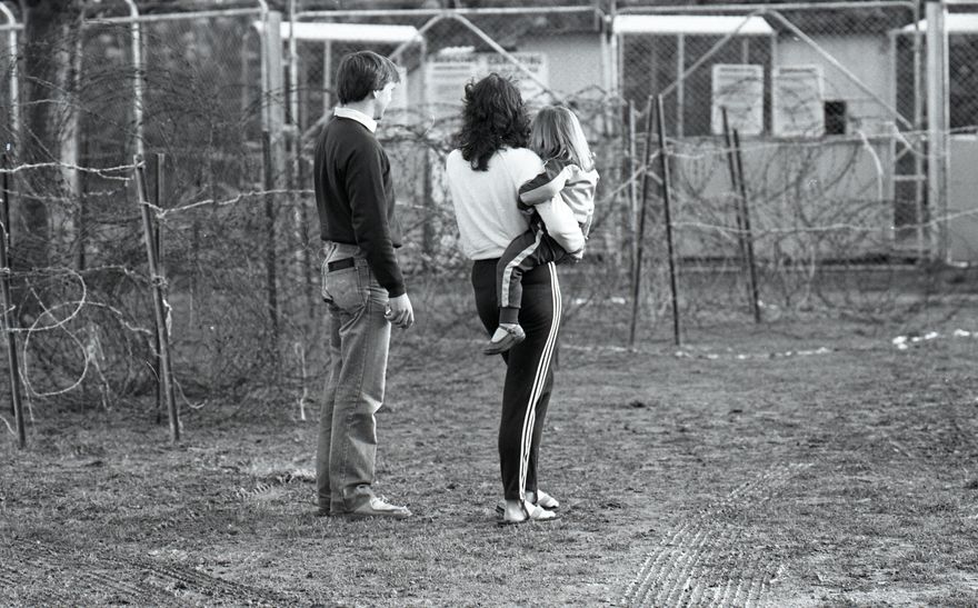 This image was taken (but not used) for a story that ran in The Manawatu Evening Standard on 01 August 1981. Barbed wire was erected around the Showgrounds and barricades blocked parts of Cuba Street in anticipation of anti-Apartheid and anti-Springbok Tour protests during the rugby match played between the Springboks and Manawatū on 1 August 1981.