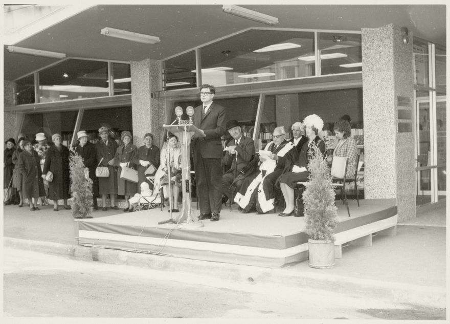 Maurice Sexton (Chairman Library and City Councillor) speaking at the official opening of the public library.