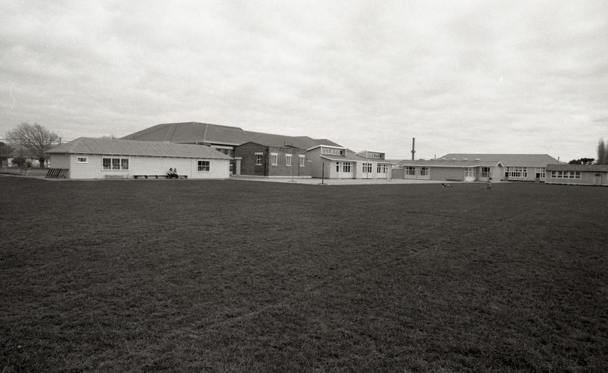 This image was published on page 55 of the Central School Centenary (1873-1973) commemoration booklet, with the following text: "The scene before the arrival of the giant marquee and as we all remember it."