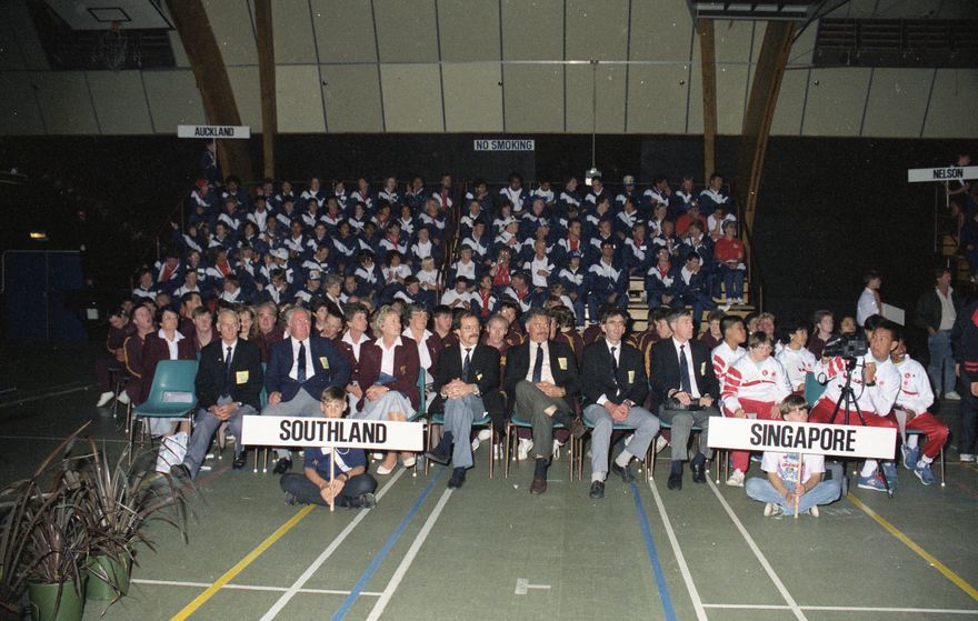 Three teams attend the opening ceremony of the New Zealand National Special Olympics Summer Games held at the Manawatū Sports Stadium. The Games took place in Palmerston North between Friday 30 November and Sunday 2 December, with over 1250 atheletes participating. Auckland was the largest team, with 71 athletes attending. The Singapore team comprised six competitors and four supervisors.
