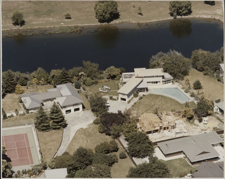 Aerial photograph of houses and properties on and around Centennial Drive.