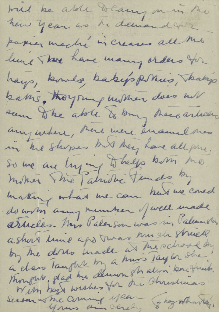 - Letter dated 12 December 1944 with thanks for arrival of papier mache